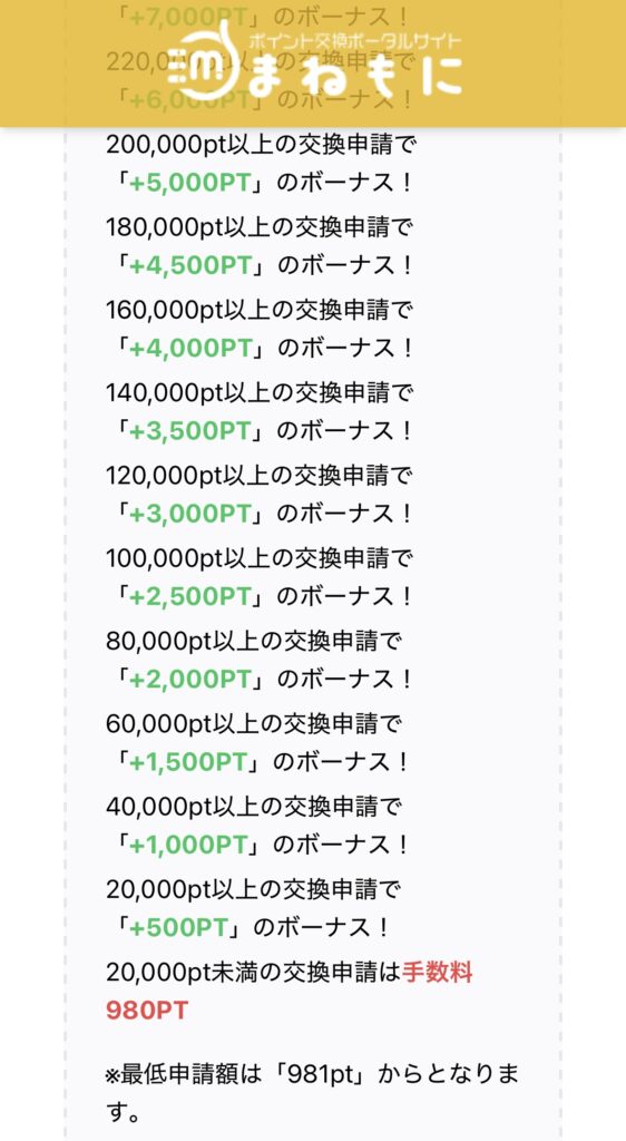- 20,000ポイント未満の換金は手数料が高い